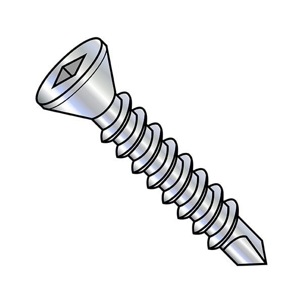 Self-Drilling Screw, #6-20 x 2-1/2 in, Zinc Plated Steel Flat Head Square Drive, 2000 PK
