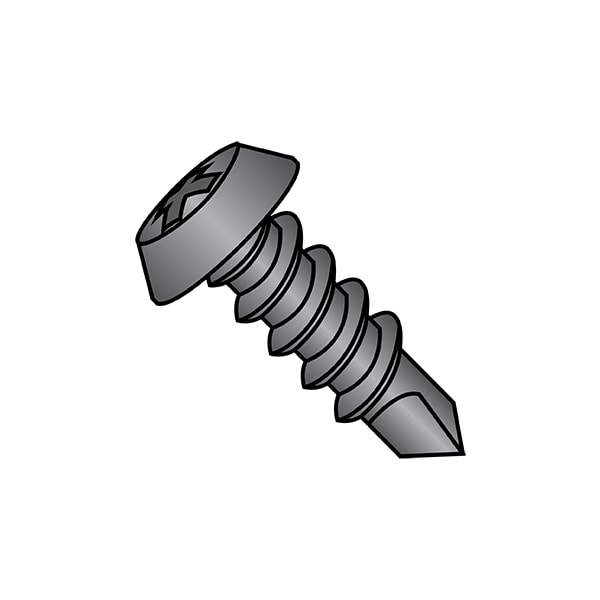 Self-Drilling Screw, #6-20 x 7/16 in, Black Phosphate Steel Pan Head Phillips Drive, 5000 PK