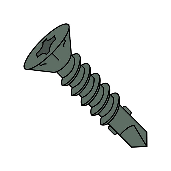 Self-Drilling Screw, #8-18 x 2-1/4 in, Green Ceramic Steel Flat Head Phillips Drive, 1000 PK