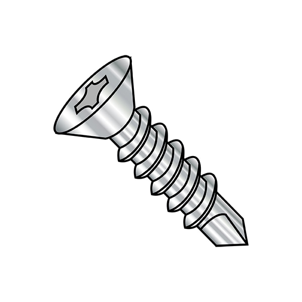 Self-Drilling Screw, #8-18 x 2 in, Plain 410 Stainless Steel Flat Head Phillips Drive, 2000 PK