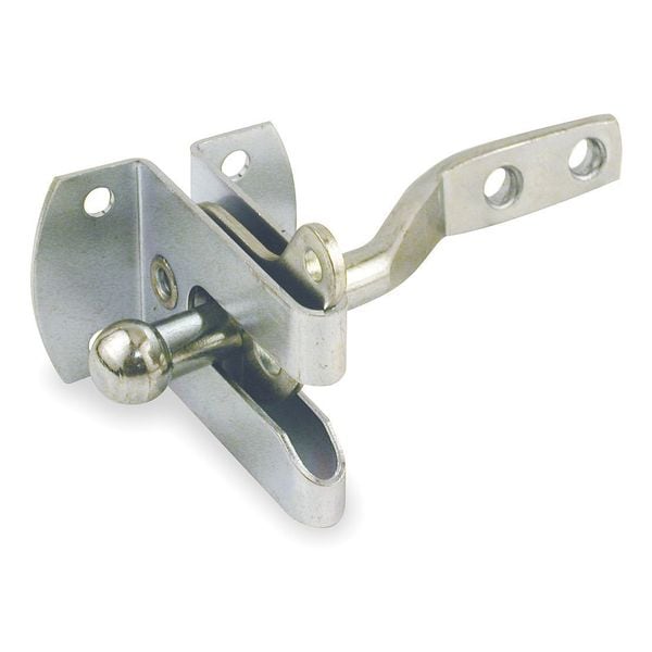 Self-Latching Gate Latch, Product Type Self-Latching Gate Latch, Latch Type Automatic, Bolt Head Diameter 3/8 in, Maximum Shackle Diameter 3/8 in, Material Steel, Number of Mounting Holes 6, Hardware Included Yes, Color Silver, Throw Size 2 3/4 in, Bolt Length 4 in, Overall Width 1 7/8 in, Overall Height 2 3/16 in, Overall Length 4 in, Finish Zinc