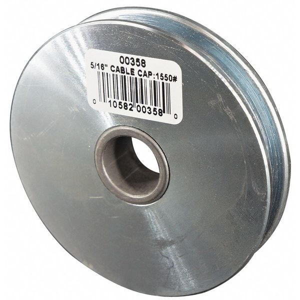 Sheave, Wire Rope, 5/16 in Max Cable Size, 1,550 lb Max Load, Zinc Plated