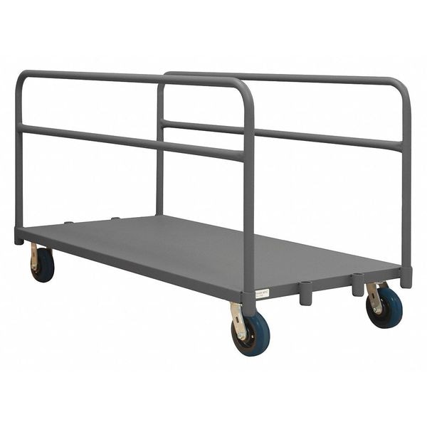 Single-Height Vertical Panel Truck with Adjustable Rails, Load Capacity 3,600 lb, Rail Type Adjustable, Rail Height 26 3/4 in, Lip Style Flush, Overall Length 75 1/2 in, Overall Width 24 in, Overall Height 36 in, Deck Construction Solid, Deck Material Steel, Deck Finish/Coating Powder Coated, Deck Gauge 14 ga, Deck Height 9 1/8 in, Deck Length 72 in