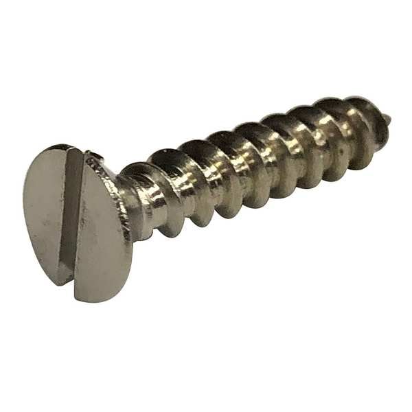 Sheet Metal Screw, Head Type Flat, Finish Plain, Material Stainless Steel, Screw Size #8, Fastener Length 1 in, Head Width 0.312 in, Head Height 0.094 in, Dimensional Standards ASME B18.6.4, For Maximum Material Thickness 1/4 in, Pack Size Small, Minimum Head Height Not Applicable, Minimum Head Width Not Applicable, Maximum Head Height 3/32 in, Maximum Head Width 5/16 in, System of Measurement Inch, Drive Slotted, Point Type A