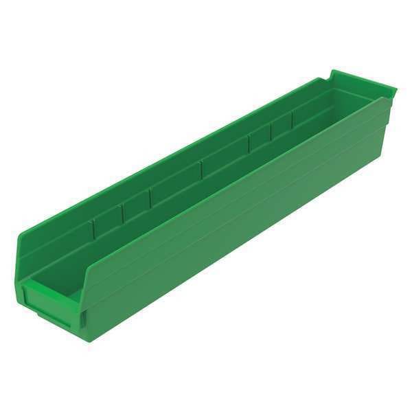 Shelf Storage Bin, Plastic, Green, 4 in H, 4 1/8 in W, 23 5/8 in L
