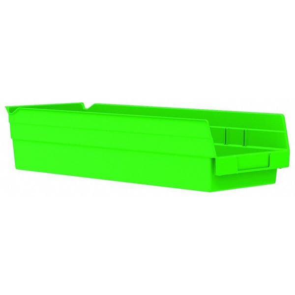 Shelf Storage Bin, Plastic, Green, 4 in H, 6 5/8 in W, 17 7/8 in L