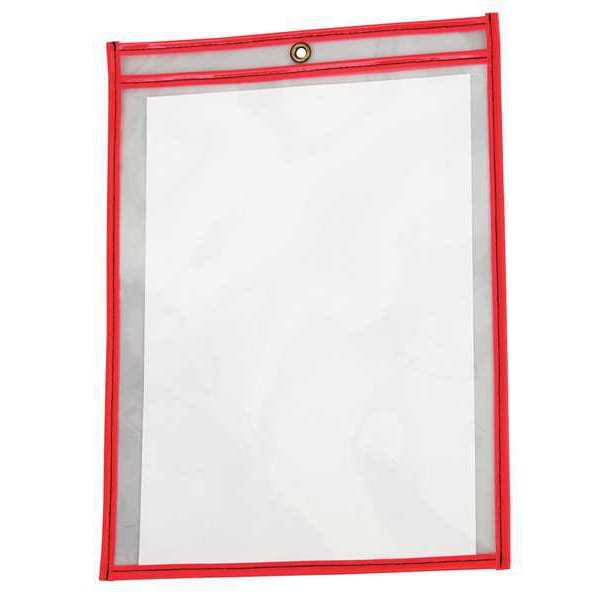 Shop Ticket Holder, Mounting Type 1/4 in Grommet, Opening Top, Material Vinyl, Seam Style Stitched, Color Clear, Red, Width 10 1/16 in, Height 13 3/8 in, Package Quantity 15