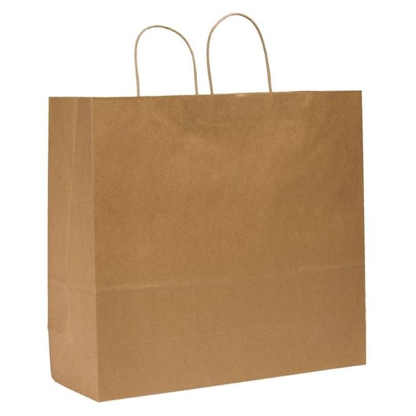 Bag Type Standard Merchandise Bag, Paper, Thickness Not Applicable, Kraft, Handle Type Paper Twist, Message Not Applicable, Bag Bottom Type Flat, Shopping Bag, Package Configuration Bundle, Recycled Content Made From Recycled Content, FDA Compliant FDA Compliant, Width 16 in, Depth 6 in, Height 19 1/4 in, Package Quantity 200