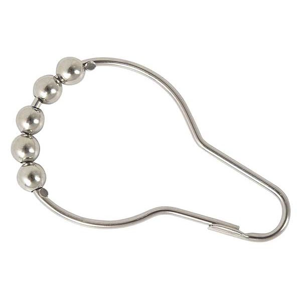 Shower Curtain Hooks, Closure Style Snap, Color Silver, Finish Nickel Plated, Material Brass, Maximum Rod Diameter 1 1/2 in, Overall Height 3 in, Overall Width 1 3/4 in, Product Type Shower Curtain Hooks with Roller Balls, Weight Capacity Not Applicable, Package Quantity 13