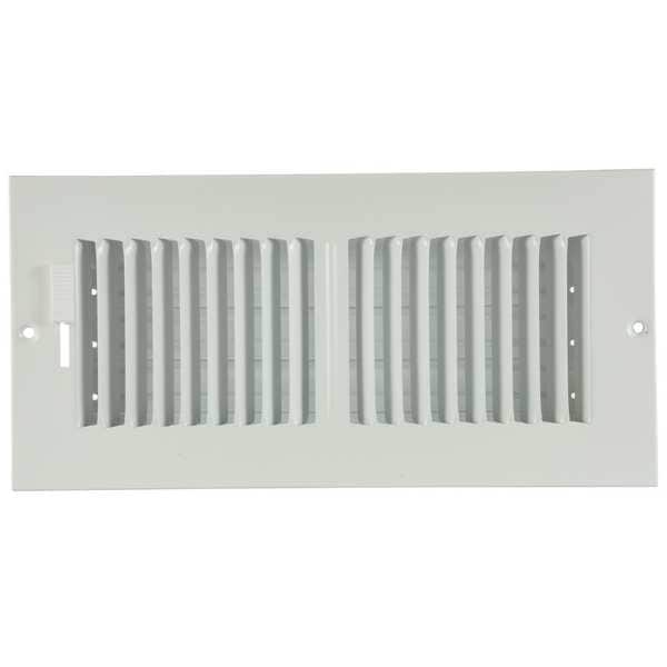 Sidewall/Ceiling Register, Overall Depth 1 1/8 in, Overall Height 5 3/4 in, Overall Width 11 3/4 in, Maximum Opening Height 4 in, Maximum Opening Width 10 in, Filter Depth Not Applicable, Filter Height Not Applicable, Filter Width Not Applicable, Grille Color White, Grille Material Steel, Material Steel, Damper Material Steel, Bar Spacing 1/2 in, Face Design Louvered, Airflow Directions Two-Way, Adjustable Blades No, Mounting Location Ceiling, Wall, Mounting Style Surface Mount