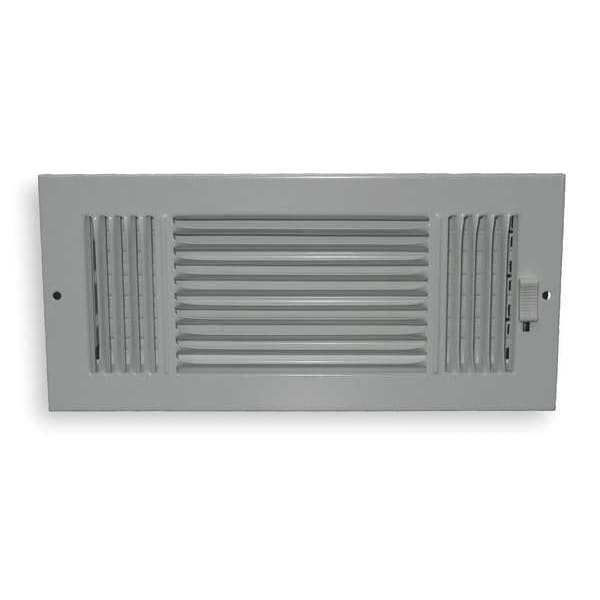 Sidewall/Ceiling Register, 12 in W x 6 in H Opening, White, Steel, Three-Way, Surface Mount