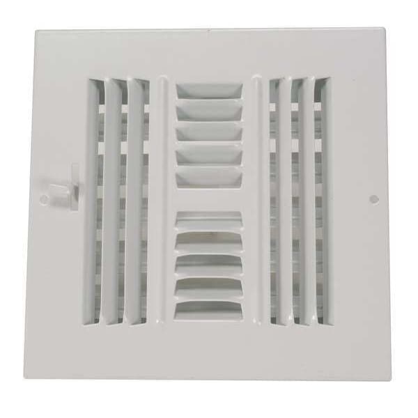Sidewall/Ceiling Register, Overall Depth 1 1/8 in, Overall Height 7 3/4 in, Overall Width 7 3/4 in, Maximum Opening Height 6 in, Maximum Opening Width 6 in, Filter Depth Not Applicable, Filter Height Not Applicable, Filter Width Not Applicable, Grille Color White, Grille Material Steel, Material Steel, Damper Material Steel, Bar Spacing 1/2 in, Face Design Louvered, Airflow Directions Four-Way, Adjustable Blades No, Mounting Location Ceiling, Wall, Mounting Style Surface Mount