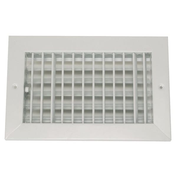 Sidewall/Ceiling Register, Overall Depth 1 1/8 in, Overall Height 9 7/8 in, Overall Width 9 7/8 in, Maximum Opening Height 8 in, Maximum Opening Width 8 in, Filter Depth Not Applicable, Filter Height Not Applicable, Filter Width Not Applicable, Grille Color White, Grille Material Steel, Material Steel, Damper Material Steel, Bar Spacing 3/8 in, Face Design Louvered, Airflow Directions One-Way, Adjustable Blades No, Mounting Location Ceiling, Wall, Mounting Style Surface Mount