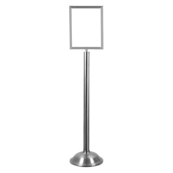 Floor Sign Holder, Mounting Style Pedestal, Size 11 in x 14 in, Overall Height 51 3/8 in, Material Steel, Color Silver, ADA Compliance No