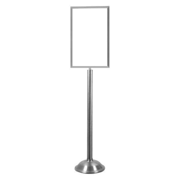 Floor Sign Holder, Mounting Style Pedestal, Size 14 in x 22 in, Overall Height 59 1/2 in, Material Steel, Color Silver, ADA Compliance No