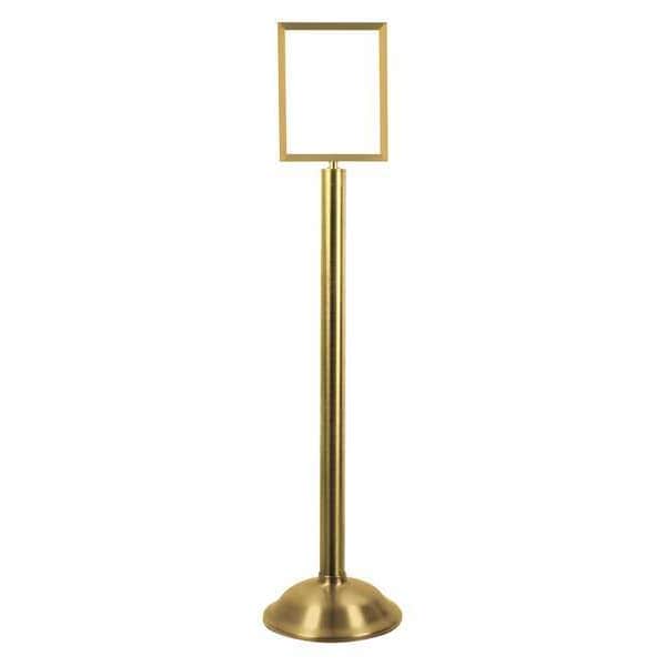 Floor Sign Holder, Mounting Style Pedestal, Size 8-1/2 in x 11 in, Overall Height 48 3/8 in, Material Steel, Color Brass, ADA Compliance No