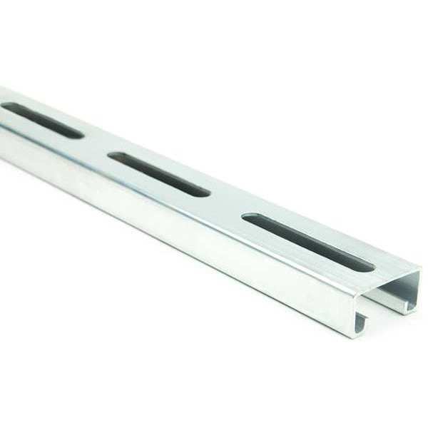 Strut Channel - Slotted, Slot Type Long Slotted, Size 1 5/8 in x 13/16 in, Slot Length 3 in, Slot Width 13/32 in, Overall Length 10 ft, Overall Height 13/16 in, Overall Width 1 5/8 in, Aluminum, Gauge 14 ga, Hole Size 13/32 in x 3 in, Load Capacity 90 lb, Hole Spacing 4 in Center to Center, Style Single, Channel Type Slotted, Slot Spacing 4 in, Thickness 1/16 in, Silver, Finish Plain, FS-500
