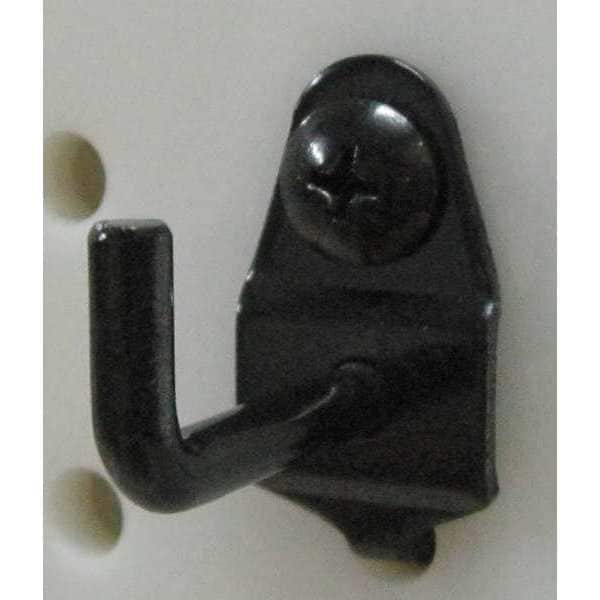 Single Rod Pegboard Hook, Overall Length 1 1/2 in, Overall Width 3/4 in, 1 in For Pegboard Hole Spacing, For Pegboard Hole Size 1/4 in, Surface, Screw-In Locking System, Circle For Pegboard Hole Shape, Steel, Black, 90-Degree Single Hook Accessory Type, Package Quantity 10