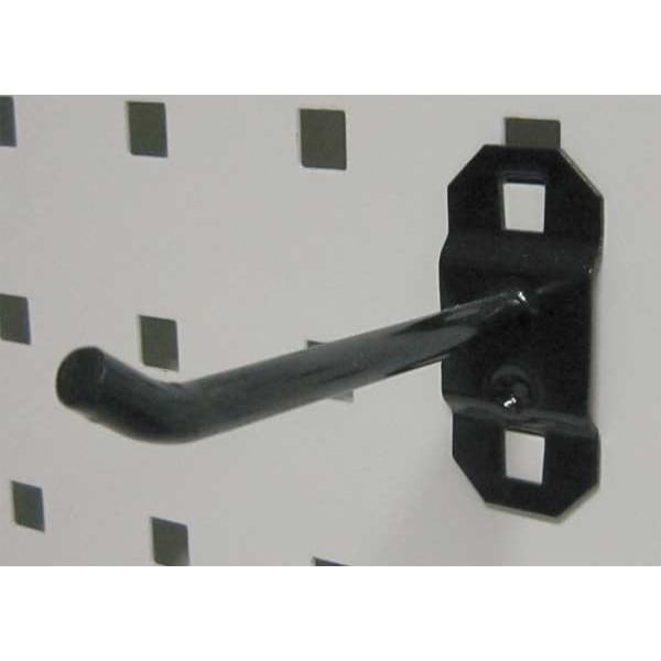 Single Rod Pegboard Hook, Overall Length 3 1/2 in, Overall Width 1 in, 1 1/2 in For Pegboard Hole Spacing, For Pegboard Hole Size 3/8 in, Surface, Screw-In Locking System, Square For Pegboard Hole Shape, Steel, Black, 30-Degree Single Hook Accessory Type, Package Quantity 5