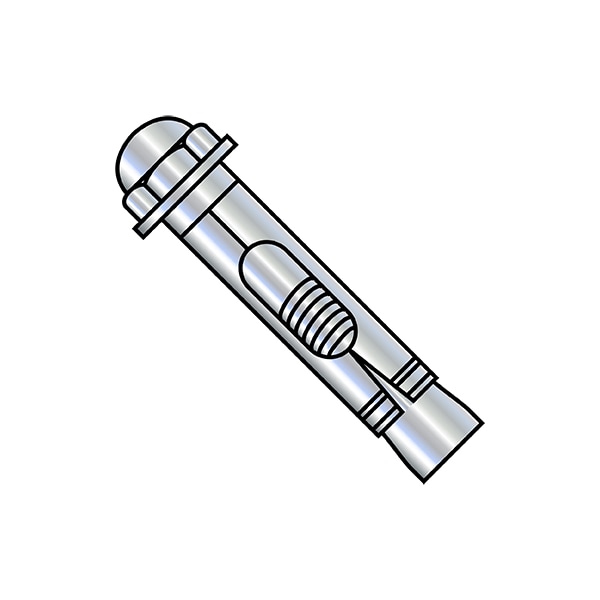 Sleeve Anchor, 1/4" Dia., 2-1/4" L, Steel Zinc Plated, 100 PK