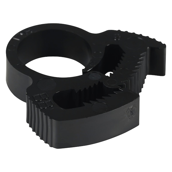 Double Grip Plastic Hose Clamp, Band Thickness 0.083 in, Band Width 0.29 in, Clamp Maximum Inside Diameter 0.6 in, Clamp Minimum Inside Diameter 0.54 in, Color Black, Material Nylon, Tooth Grip Type Double, Clamp Type Snap-on Clamp, Maximum Operating Temperature 255 Degrees F, Minimum Operating Temperature -40 Degrees F, Standards UL 94 V-2, For Environment Agricultural Machinery, Automotive Engines, Head Height 0.54 in