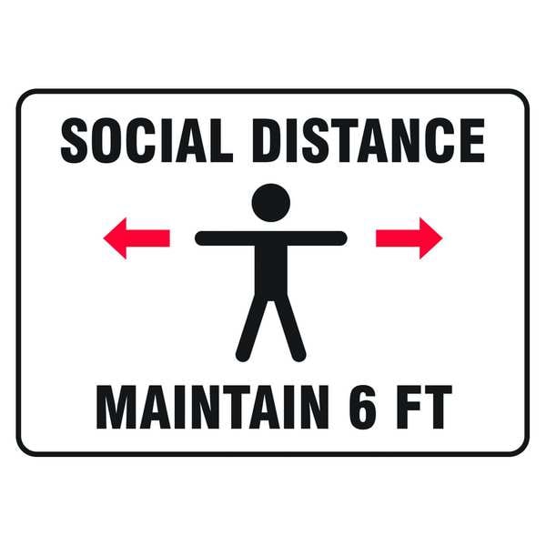 Safety Sign, Sign Subject Matter Social Distancing, Height 7 in, Width 10 in, Sign Material Vinyl, Sign Mounting Style Adhesive Surface, Header No Header, Legend Social Distance Maintain 6 Ft, Printed Language English