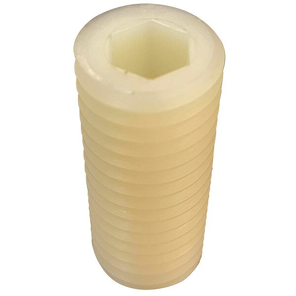 Socket Set Screw, Head Type Headless, Point Type Flat, System of Measurement Inch, Thread Size #8-32, Overall Length 1/4 in, Fastener Length 1/4 in, Drive Type Socket, Drive Size 5/64 in, Material Nylon, Finish Plain, Pack Size Small Pack, Decimal Equivalent 0.164 in, Head Height Not Applicable, Head Width 5/32 in, Maximum Head Height Not Applicable, Maximum Temperature 185 Degrees F, Minimum Head Height Not Applicable, Minimum Temperature -40 Degrees F, Package Quantity 50