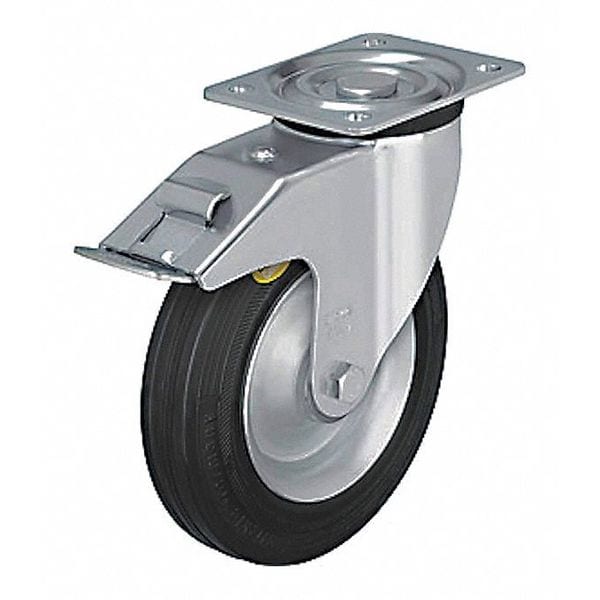 Swivel, Plate Caster, Load Rating 495 lb, Wheel Dia. 6 5/16 in, Wheel Width 1 9/16 in, Wheel/Tread Material Rubber, Non-Marking No, Number of Wheels 1, Caster Brake Type Total Lock, Tread Shape Standard