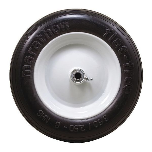Flat-Free Wheel, 275 lb Load Rating, Ribbed Tread, 13 in Wheel Dia., 2 1/2 in Wheel Width, For Axle Size 5/8 in, 3.50/2.50-8, Standard Tire Rim Type, Center Mount Hub Position, 3 in Hub Length, Steel Hub Material, Yes Non-Marking