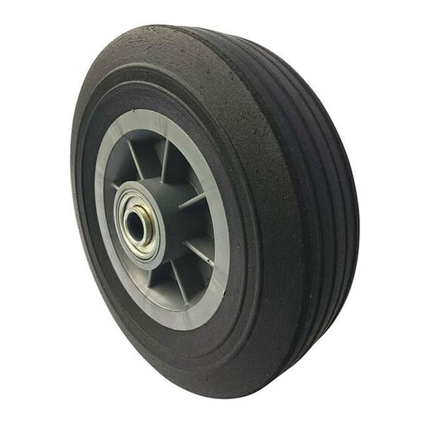 Solid Wheel, 500 lb Load Rating, Ribbed Tread, 8 in Wheel Dia., 2 in Wheel Width, For Axle Size 5/8 in, 8x2, Standard Tire Rim Type, Center Mount Hub Position, 2 1/2 in Hub Length, Plastic Hub Material, No Non-Marking