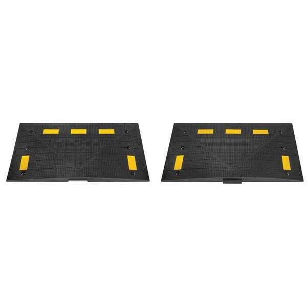 Speed Bump End Cap, Product Type Female End Cap, Male End Cap, For Use With Product Type Speed Hump, Length 19 1/2 in, Height 2 in, Width 35 1/2 in, Material Vulcanized Rubber, Color Black/Yellow, Includes (1) Female End Cap, (1) Male End Cap, Installation Surface Asphalt, Concrete, Includes Installation Hardware No, Compatible Manufacturer Part Number 8RX45, Compatible with Grainger Part Number 8RX45