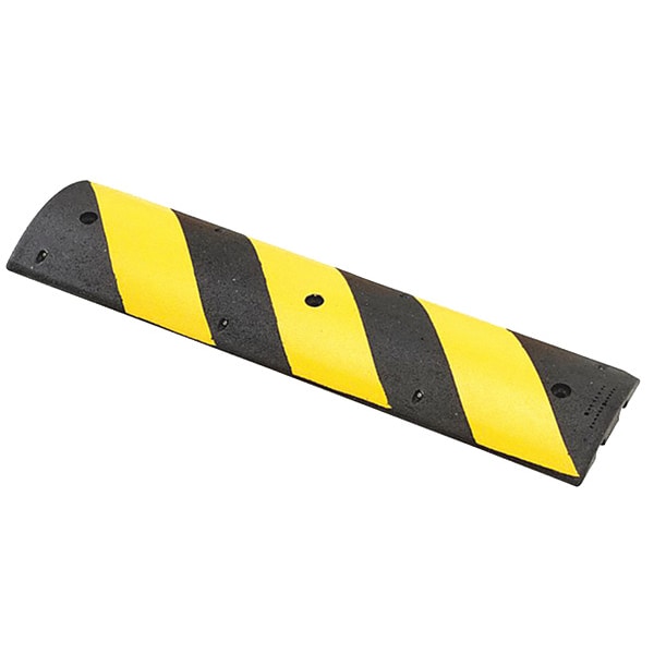 Speed Bump, Product Type Speed Bump, Height 3 in, Length 72 in, Installation Method Bolts, Spikes, Installation Type Permanent, Width 12 in, Color Black, Yellow, Installation Surface Asphalt, Concrete, Material Rubber, Number of Cable Channels 2, Number of Installation Holes 4, Traffic Speed Rating 2 to 5 mph, Cable Channel Height 2 in, Cable Channel Width 1 1/4 in, Includes Cable Channel Yes, Includes Installation Hardware No, Maximum Weight Capacity 40,000 lb, Tensile Strength 350 psi