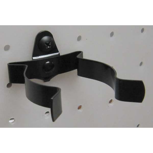 Spray Can Holder, Overall Length 2 7/8 in, Overall Width 2 in, 1 in For Pegboard Hole Spacing, For Pegboard Hole Size 1/4 in, Surface, Screw-In Locking System, Circle For Pegboard Hole Shape, Steel, Black, Spray Can Holder Accessory Type, Package Quantity 5