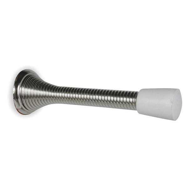 Spring Door Stop, Mounting Type Screw In, Finish Chrome, Color Gray, Base Dia. 1 in, Projection 3 in, Mounting Style Screw-In, Material Steel, Tip Material Rubber, Hardware Included