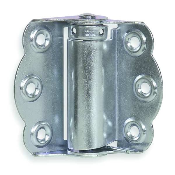 Spring Hinge, Steel Material, Bright Zinc Finish, 35 lb Load Capacity, With Holes, 3 Holes per Leaf, No Ligature Resistant, 270 Degrees Range of Motion, Orientation Non Handed, 2 3/4 in Door Leaf Height, 2 3/4 in Frame Leaf Height, 1 15/32 in Door Leaf Width, 1 15/32 in Frame Leaf Width, 0.048 in Door Leaf Thickness, 0.048 in Frame Leaf Thickness, Plain Bearing Type, Rounded Corners, Included Hardware, Full Surface Mounting, Not Applicable Overall Knuckle Height, Steel Pin Material