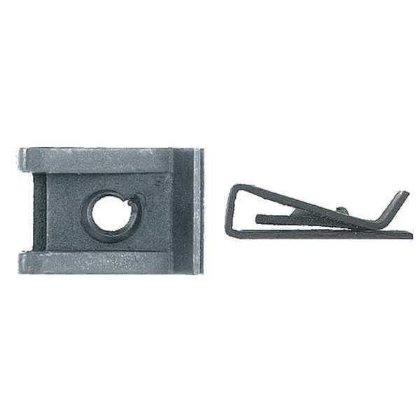 Spring Nut, Nut Shape U Style Spring Nut, Nut Finish Phosphate, Nut Material Steel, Minimum Panel Thickness 0.02 in, Maximum Panel Thickness 0.15 in, Overall Width 0.63 in, Overall Length 0.88 in, Hole Center to Outside Edge 0.34 in, System of Measurement Inch, Thread Size #10, Cage Finish Phosphate, Cage Material Steel, Clip-On Style U, Color Black, Head Height 0.31 in, Package Quantity 25