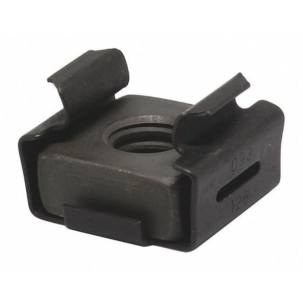 Spring Nut, Nut Shape Cage Nut, Nut Finish Phosphate, Nut Material Steel, Minimum Panel Thickness 0.093 in, Maximum Panel Thickness 0.126 in, Overall Width 0.49 in, Overall Length 0.52 in, Hole Center to Outside Edge 0.375 to 0.380 in, System of Measurement Inch, Thread Size 1/4 In.-20, Cage Finish Phosphate, Cage Material Steel, Clip-On Style Square, Color Black, For Use in Systems Automotive, Blind Assemblies, Cabinet Construction, Electrical Equipment, Grill Panels, HVAC, Server Racks