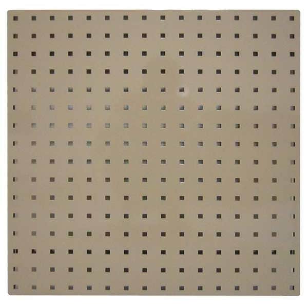 Pegboard Panel, Peg Hole Shape Square, Peg Hole Size 9/32 in, Peg Hole Spacing 1 1/2 in, Panel Pegboard Type, 300 lb Panel Load Capacity, Overall Depth 1/2 in, Overall Height 24 in, Overall Width 24 in, Storage Area 4 sq ft, Number of Usable Sides 1, Number of Hooks 0, Number of Panels 2, 600 lb Whole Unit Load Capacity, Tan, Epoxy Coated, Steel, Assembled No, Package Quantity 2
