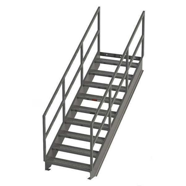 Stair Unit, 106 in Overall H, 9 Steps, Carbon Steel, 1,000 lb Load Capacity, Serrated Tread