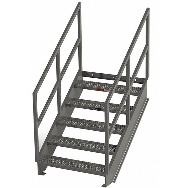 Stair Unit, 78 in Overall H, 5 Steps, Carbon Steel, 1,000 lb Load Capacity, Serrated Tread
