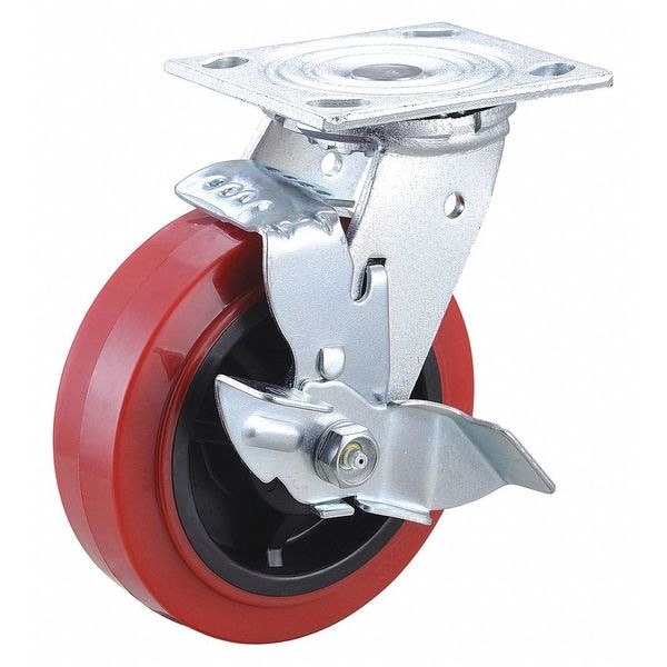 Swivel, Plate Caster, Load Rating 800 lb, Swivel Lock Type No Lock Included, Wheel Dia. 6 in, Wheel Width 2 in, Wheel/Tread Material Polyurethane, Wheel Core Material Polyolefin, Non-Marking Yes, Number of Wheels 1, Caster Brake Type Side Brake, Tread Shape Standard