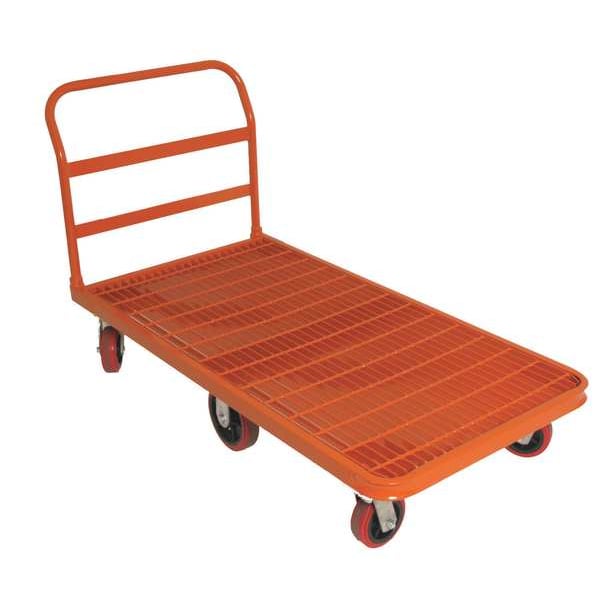 Flow-Through Steel-Deck Platform Truck, Load Capacity 1,750 lb, Overall Height 35 1/2 in, Overall Length 63 in, Overall Width 30 in, Deck Construction Grated, Deck Material Steel, Deck Finish/Coating Powder Coated, Deck Height 10 3/4 in, Deck Length 50 in, Deck Width 30 in, Deck Surface Smooth, Frame Material Steel, Frame Finish/Coating Powder Coated, Handle Type Raised, Side Panel Type No Side Panels, Number of Platforms 1, Color Red