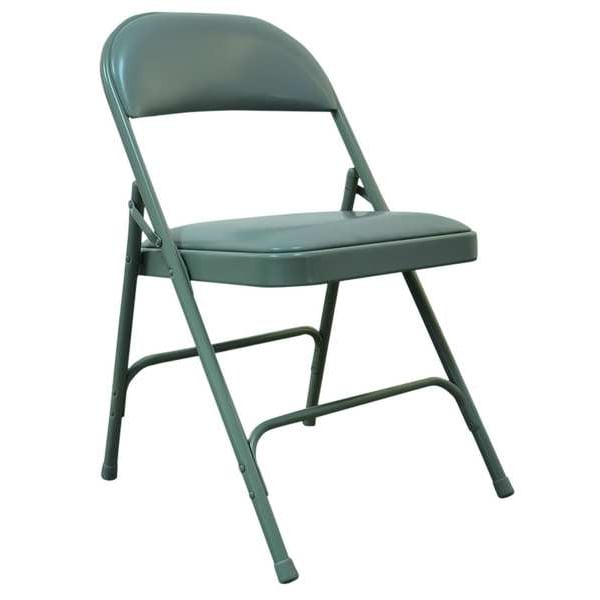 Folding Chair, Overall Height 30 1/4 in, Overall Width 18 1/4 in, Overall Depth 20 1/8 in, Seat Height 17 1/2 in, Seat Width 15 7/8 in, Seat Depth 15 5/8 in, Back Height 7 3/8 in, Back Width 16 1/4 in, Seat Color Gray, Back Color Gray, Frame Color Gray, Seat Material Vinyl, Back Material Vinyl, Frame Material Steel, Cushion Thickness 1 in, Arm Style Armless, Weight Capacity 300 lb