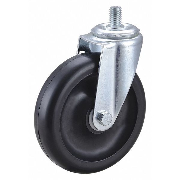 Stem Caster, Swivel Caster, 300 lb Load Rating, 300 to 999 lb, 5 in Wheel Dia., 1 1/4 in Wheel Width, Polyolefin Wheel/Tread Material, 5 13/16 in Mounting Height, Delrin, 1/2 In.-13 x 3/4 in Caster Stem Size, Threaded, Steel Caster Frame Material, Zinc Plated Frame Finish, Yes Non-Marking, 1 Number of Wheels
