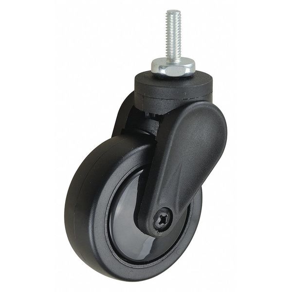 Stem Caster, Swivel Caster, 110 lb Load Rating, 0 to 299 lb, 3 in Wheel Dia., 1 in Wheel Width, Polyolefin Wheel/Tread Material, 4 5/16 in Mounting Height, Delrin, 5/16 In.-18 x 1 in Caster Stem Size, Threaded, Steel Caster Frame Material, Glass Filled Nylon Frame Finish, Yes Non-Marking, 1 Number of Wheels
