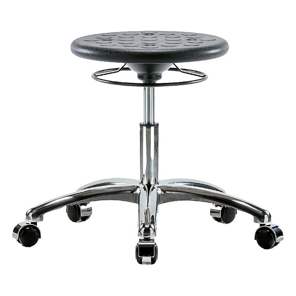Stool, Weight Capacity 300 lb, Seat Height Range 16 1/4 in to 21 1/2 in, Seat Depth 13 in, Seat Width 13 in, Color Black, Material Polyurethane, Base Polished Cast Aluminum, Features 360 Degrees Control, Dual Wheel, Non-Marring Casters, Self-Braking, Soil and Puncture Resistant, Includes Not Applicable, Standards ANSI/BIFMA, CAL 117