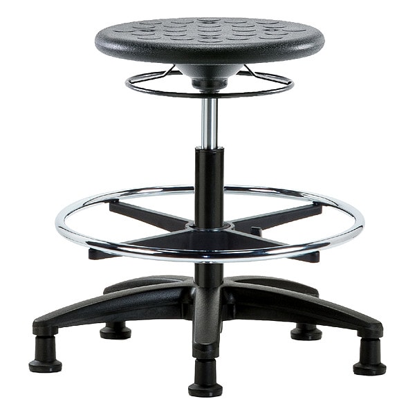 Stool, Weight Capacity 300 lb, Seat Height Range 17 3/4 in to 25 1/2 in, Seat Depth 13 in, Seat Width 13 in, Color Black, Material Polyurethane, Base Nylon Reinforced Fiberglass, Features 360 Degrees Control, Soil and Puncture Resistant, Includes Not Applicable, Standards ANSI/BIFMA, CAL 117