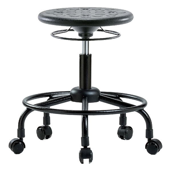 Stool, Weight Capacity 300 lb, Seat Height Range 20 in to 25 in, Seat Depth 13 in, Seat Width 13 in, Color Black, Material Polyurethane, Base Powder Coated Steel, Features 360 Degrees Control, Dual Wheel, Non-Marring Casters, Self-Braking, Soil and Puncture Resistant, Includes Not Applicable, Standards ANSI/BIFMA, CAL 117