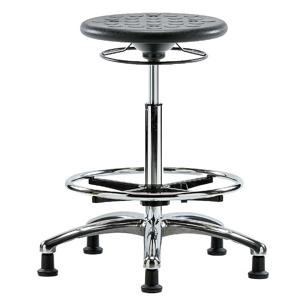 Stool, Weight Capacity 300 lb, Seat Height Range 23 1/2 in to 33 1/2 in, Seat Depth 13 in, Seat Width 13 in, Color Black, Material Polyurethane, Base Polished Cast Aluminum, Features 360 Degrees Control, Soil and Puncture Resistant, Includes Not Applicable, Standards ANSI/BIFMA, CAL 117