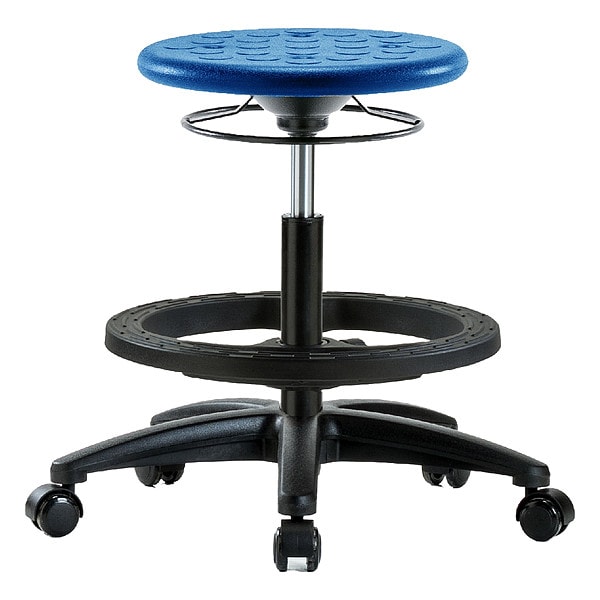 Stool, Weight Capacity 300 lb, Seat Height Range 17 3/4 in to 25 1/2 in, Seat Depth 13 in, Seat Width 13 in, Color Blue, Material Polyurethane, Base Nylon Reinforced Fiberglass, Features 360 Degrees Control, Dual Wheel, Non-Marring Casters, Self-Braking, Soil and Puncture Resistant, Includes Not Applicable, Standards ANSI/BIFMA, CAL 117